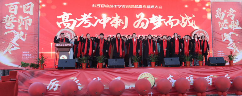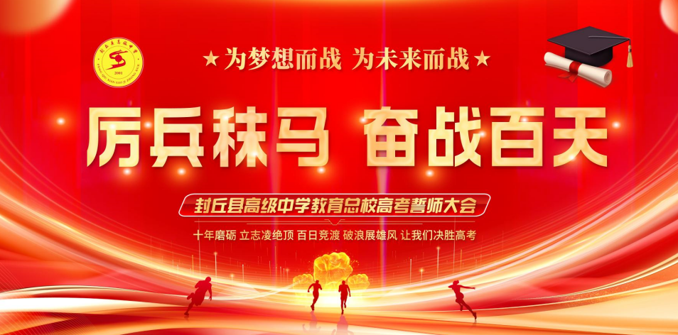 万象春华始更新,百日征程催人进。在这万物复苏、草木吐绿的季节里,封丘县高级中学教育总校师生再次相聚在美丽的校园。为进一步坚定高三师生备考信心决心,确保2024年高考工作争先创优、勇夺佳绩,3月7日下午,封丘县高级中学教育总校隆重举行2024年高考百日冲刺誓师大会。封丘县高级中学党支部书记、校长刘鸿祥同志带领封丘高中班子成员和全校师生参加了此次誓师大会。