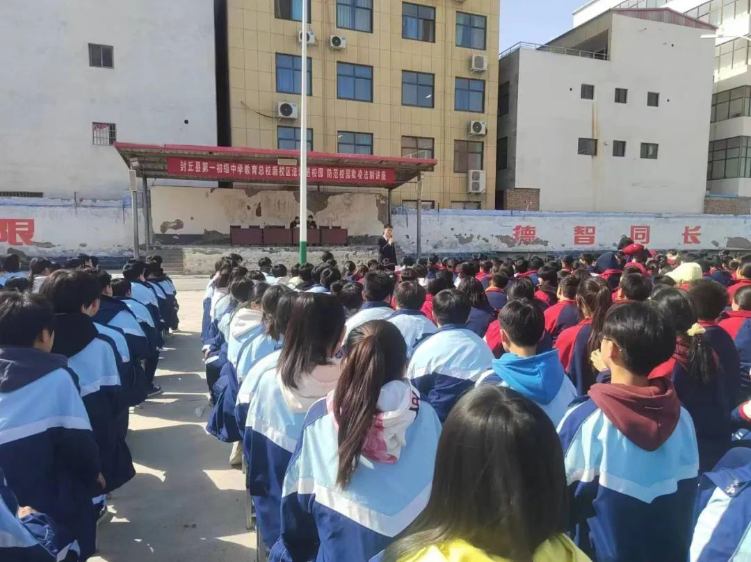 3月7日,封丘县法院冯村法庭庭长张辉走进封丘县一初中新校区,以法治副校长身份为一初中新校区1900余名学生带来新学期“法治第一课”——《尊法守法 崇德向善》。