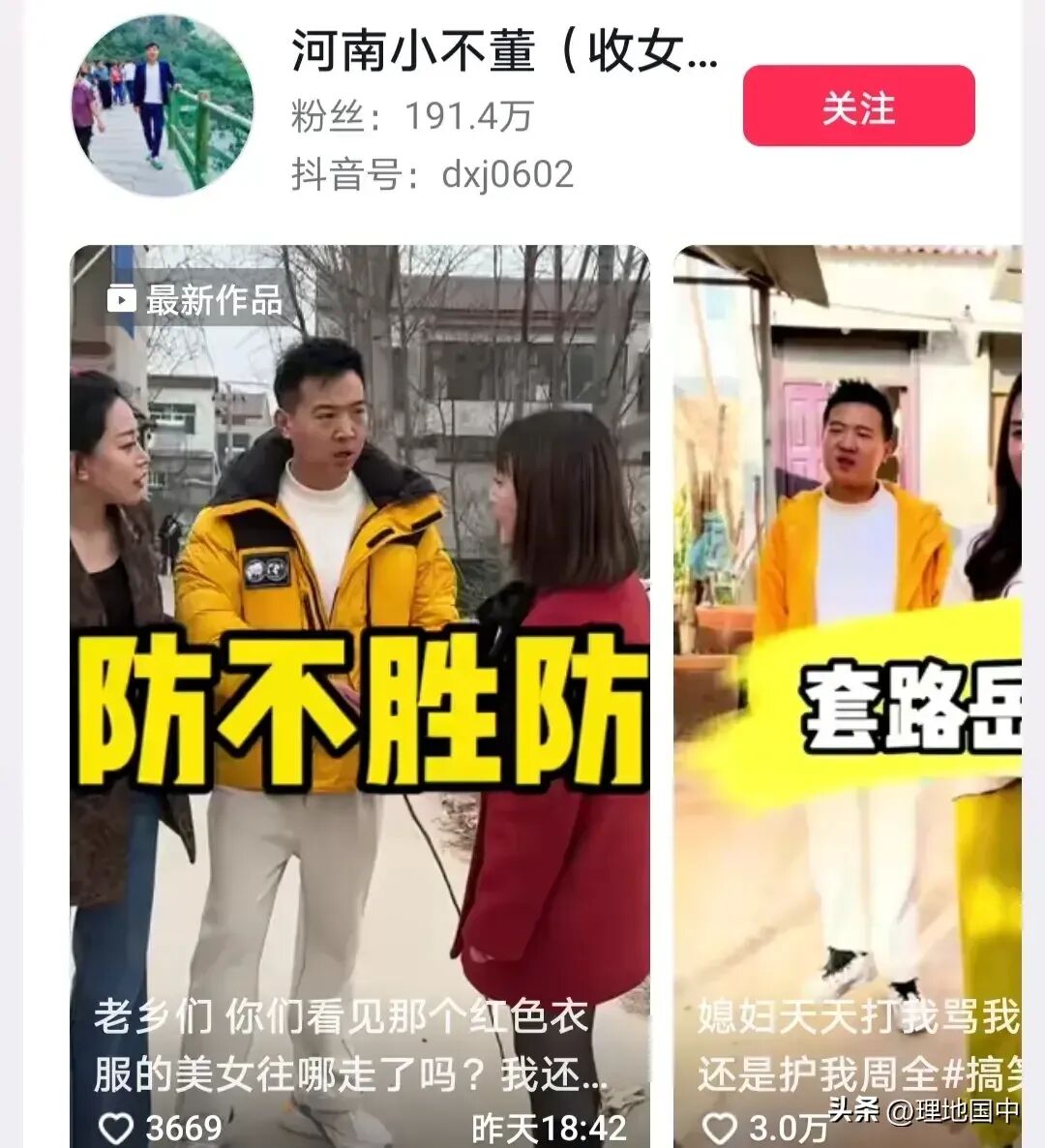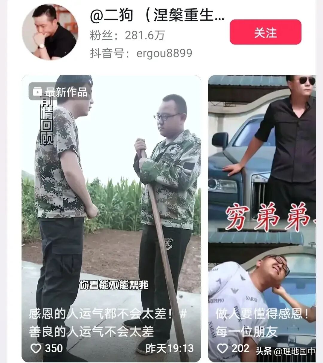 粉丝数281.6万,短剧创作,非常有才华,将日常生活中的琐事拍成了很有道理让人深思又捧腹大笑的剧情,值得一看。
