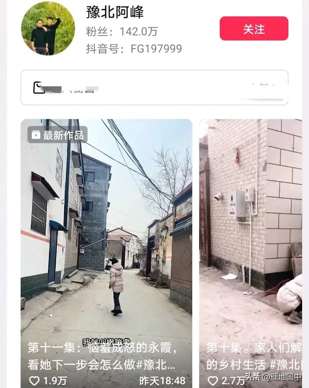 粉丝数142万,乡村生活拍成了连续剧,每一期视频都有让人眼睛一亮的亮点,很有意思。
