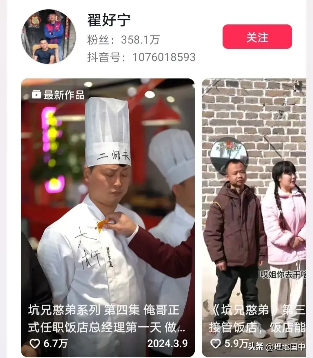 粉丝数358.1万,坑兄憨弟系列视频非常幽默风趣,搞笑他们是认真的,深受网友们喜欢。
