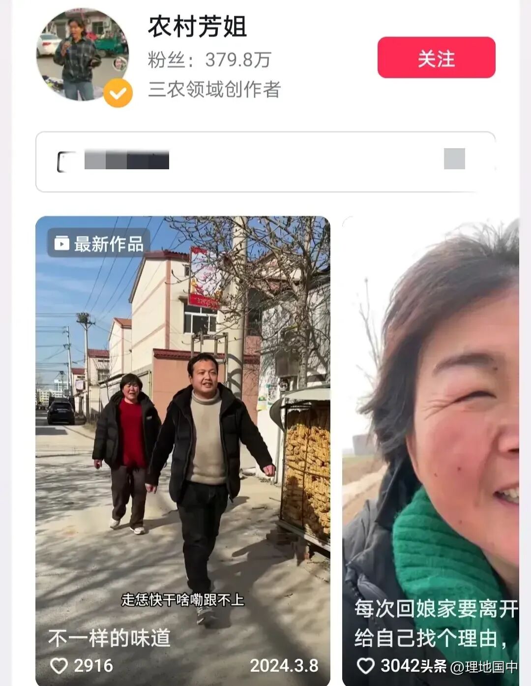 粉丝数379.8万,农村三农领域创作者,带来很多有趣的故事,挺幽默的很好看。