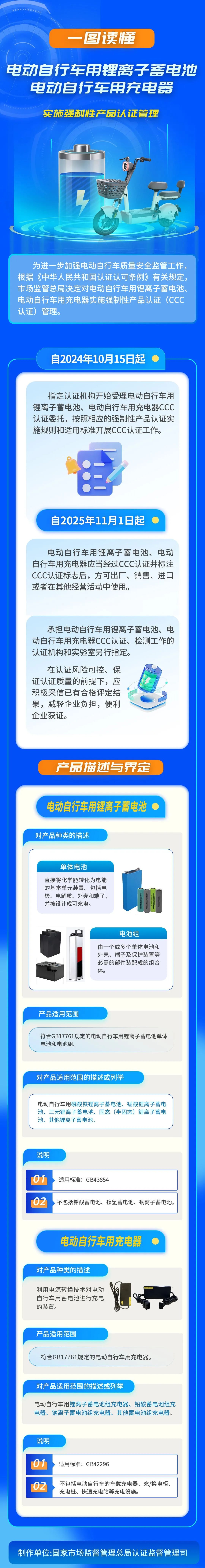 作为重要的新能源出行方式,电动自行车已成为消费者日常生活的重要交通工具,市场监管总局日前发布公告,对电动自行车用锂离子蓄电池、电动自行车用充电器实施强制性产品认证(CCC认证)管理,自2024年10月15日起,受理认证委托。2025年11月1日后,电动自行车用锂电池和充电器应当经过CCC认证,并标注CCC认证标志,方可出厂、销售、进口或者在其他经营活动中使用。电动自行车车用锂电池和充电器,实施强制性产品认证管理,能够更好地保障消费者合法权益,有助于从源头上减少事故发生。在此提醒广大消费者,在选购和使用电动车的时候,一定要注意以下几点:1.选择信誉良好、证照齐全的正规商家购买电动自行车,同时记得索要发票,这是日后消费者维权的重要凭证。2.电动自行车依法实施强制性产品认证(CCC认证),需查看产品的CCC认证证书以及产品合格证信息,并与实物进行核对。3.注意查看电动自行车电池是否具备欠压、过流保护和短路保护功能,仔细检查随机附件是否包括说明书、合格证、用户警示说明等。4.确认产品具有脚踏骑行能力,车载蓄电池是作为辅助能源,且标称电压应小于或等于48V。1.使用前仔细阅读产品说明书,按照说明书要求正确使用电动自行车。