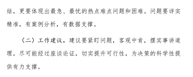 (二)注重实效。各地要认真学习政策文件,准确掌握调研要点,从当地实际出发,广泛听取基层干部的意见和呼声,真正深入到问题里面去,把握问题的规律,摸到问题的本质。在掌握大量材料的基础上,总结归纳经验做法,准确定性存在问题,提出切实可行的问题解决对策,写出有价值的调研报告。