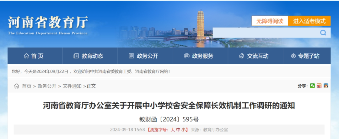 关于开展中小学校舍安全保障 长效机制工作调研的通知 快来看看具体内容 ↓↓↓