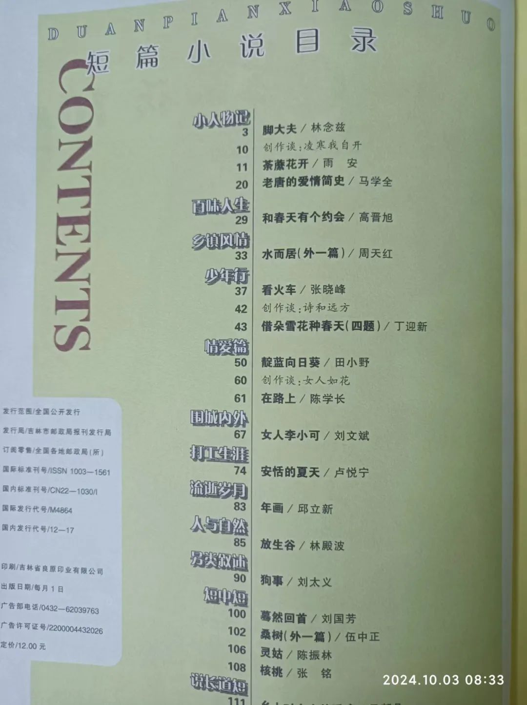老牌纯文学杂志《短篇小说》刊载我县本土作家张晓峰作品《看火车》