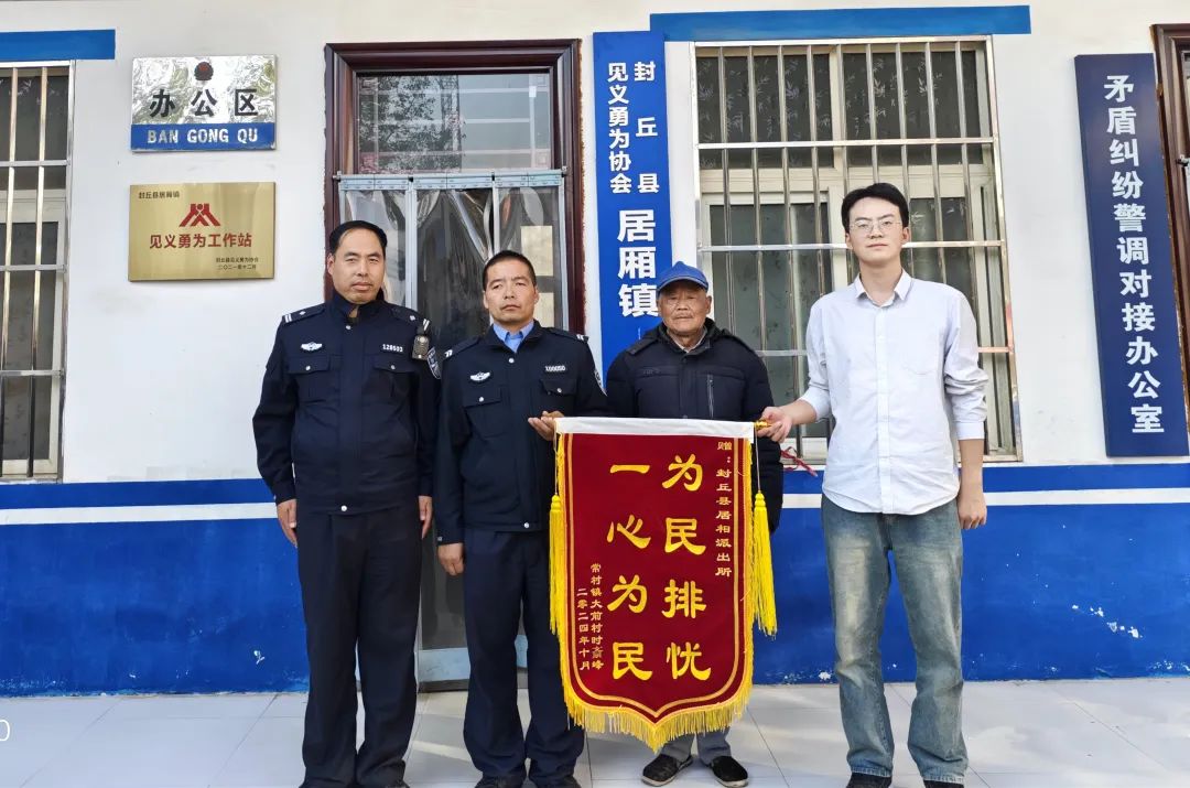 近日,长垣市常村镇大前村村民时某将一面印有“一心为民 为民排忧”的锦旗送到封丘县局居厢派出所民警手中,对民警不辞劳苦帮忙找回走失多日亲人表示感谢。10月3日下午,长垣市常村镇大前村村民时某急匆匆来到居厢派出所求助,其家人张某英3天前走失,听说人可能在居厢镇附近逗留,请派出所予以协助查找。居厢派出所所长王润波在了解张某英衣着、体貌特征等情况后,立即组织警力分组进行查找。一组人员调取张某英可能途径路线相关监控视频开展搜寻,另一组人员到周边村庄进行实地查找。同时,民警还利用各村村民微信群发布寻人启事,动员广大群众积极协助查找。功夫不负有心人,当日18时许,民警根据获取的线索,循线追踪,最终在封丘县王村乡刘庄村附近将张某英找到,当时的张某英已饿得饥肠辘辘,民警随即为其买来餐食并将其安全送到家人身边。“谢谢民警热心帮我们找到了家人,十分感谢。”看到走失3天的张某英平安归来,其家属喜极而泣,紧紧握着民警的手连声致谢!
