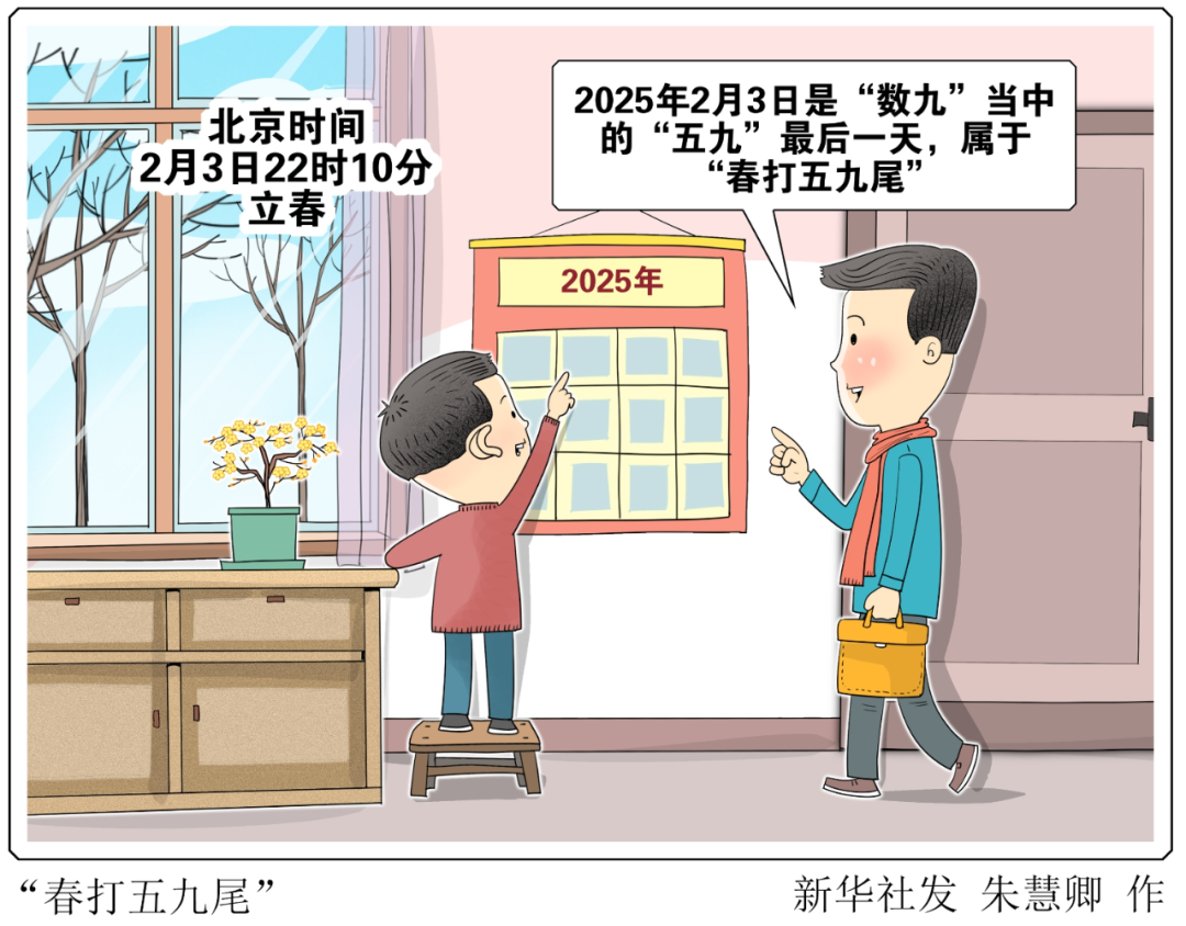 盼望着,盼望着, 东风来了,春天的脚步近了。 北京时间 2月3日22时10分 将迎来立春节气。 四时轮替以“春”为首, 万象更新以“春”为始, 春之始谓“立春”。 民俗学者、天津社会科学院研究员 王来华介绍, 立春在“五九”最后一天, 叫作“春打五九尾”; 立春在“六九”第一天, 叫作“春打六九头”。 2025年2月3日是 “数九”当中的 “五九”最后一天, 属于“春打五九尾”。 立春时节, 我国民间多有“咬春”的习俗。 俗话说“不时不食”, 古人于立春日吃萝卜, 是“咬春”的一种。 除了萝卜, 春饼、春卷等都可以“咬”。 今天起 春节假期进入后半程 春运返程陆续开始 好消息是 天气总体有利于返程 预计一直到假期结束 我省都将是无降水模式 需要注意的是 今天夜里到明天上午 东南部还有雾 好在低能见度天气 并不会维持整天 白天将逐渐减弱 此外, 近期我省多冷空气活动 受其影响我省大风频频 今天下午到4日 中西部午后西北风3-4级, 阵风5-6级。 5日,全省偏北风4级左右 中西部阵风6-7级 室内关好门窗,外出注意防风 气温方面 预计今起三天 全省大部气温起伏不大 最高气温多在10℃上下 不过5日气温又将明显下降 尤其是中西部、北部、东部 最高气温降至5℃左右 部分地区0-3℃ 今天夜里,南部阴天到多云;其他县市多云。 今天夜里到明天上午,东南部有雾。 明天到4日,全省晴天间多云。 受扩散冷空气影响,今天下午到4日,中西部午后西北风3-4级,阵风5-6级。 5日,全省晴天间多云,偏北风4级左右,中西部阵风6-7级。 6日,南部晴天转多云;其他县市晴天间多云。中西部偏西风3-4级,阵风5-6级。 7日,南部多云间阴天;其他县市晴天间多云。全省偏北风4-5级,阵风7级左右。 8日,南部多云转晴天;其他县市晴天间多云。 家人们 春运返程途中 请注意保暖 以免感冒