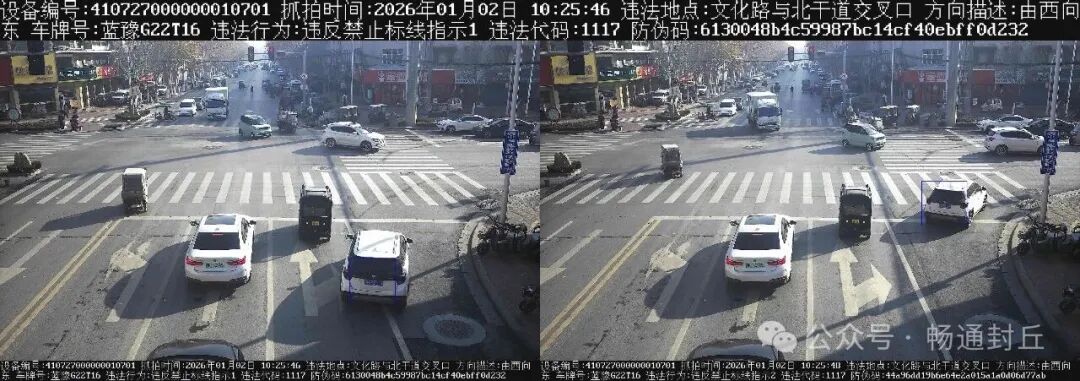 抬头看看红绿灯 是我们的出行习惯 低头看看路面的道路交通标线 却往往会被忽视 路面的实线就是“一堵墙” 压线行驶 不但影响别人 而且极易造成交通事故 封丘交警 今天曝光一批 违法“压线”的车辆 希望广大驾驶人引以为戒 自觉养成文明驾驶习惯 车牌号:豫AAK9596 违法时间:2026年01月02日 违法地点:封丘县封曹路与南杞220省道交叉口(由北向南) 车牌号:豫G22T16 违法时间:2026年01月02日 违法地点:文化路与北干道交叉口(由西向东) 车牌号:豫G99P76 违法时间:2026年01月02日 违法地点:封丘县封黄路与长邵310省道交叉口(由西向东) 车牌号:豫G611AF 违法时间:2026年01月02日 违法地点:封丘县封曹路与鲁岗大街交叉口(由南向北) 车牌号:豫GE805P 违法时间:2026年01月02日 违法地点:东环路与世纪大道交叉口(由东向西) 车牌号:豫GLX790 违法时间:2026年01月02日 违法地点:西环路与振兴路交叉口东侧(由西向东) 车牌号:豫GM306Y 违法时间:2026年01月02日 违法地点:黄池路与南干道交叉口(由西向东) 车牌号:豫GMA751 违法时间:2026年01月02日 违法地点:封丘县东环路与世纪大道交叉口(由西向东) 车牌号:豫V3MM88 违法时间:2026年01月02日 违法地点:黄池路与南干道交叉口(由西向东) 车牌号:豫G7938J_ 违法时间:2026年01月02日 违法地点:文化路与北干道交叉口(由西向东) 哪些情形属于压线? 常见违反禁止标线行驶的违法行为有:跨越双黄线,骑轧跨黄实线,以及在设有禁止停车线、导流线、网状线区域停车等。 通常道路上标线以白色居多,其中白色虚线是分隔同向行驶的车道,可以进行越线变道等操作;而白色实线则不允许越线行驶,常常作为白色虚线的延长线在交叉路口前出现,或是分隔路边的停车区域。 压线行驶的危害 1 ► 占用同向车道时,导致后面车辆不能超车或超车时易与本车发生剐蹭,因而导致事故或损失。 2 ► 易与对向车辆发生碰撞而发生事故,或双方为避让而突然转向发生事故。尤其是在转弯灯视线不好的地段,占用对向车道最容易发生事故。 3 ► 压线停车同样危害大,不仅会阻碍其他车辆的通行,引起交通堵塞,更易发生交通事故。 压线驾驶的交通违法行为 不仅容易造成交通拥堵 还存在很大的交通安全隐患 极易引发刮碰、追尾等交通事故 封丘交警@广大驾驶人 请严格遵守交通规则 有序规范行驶、各行其道 文明守法 平安回家 来源|畅通封丘
